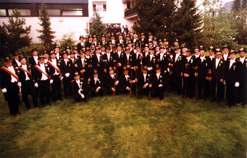 Die 1. Kompanie bei Leutnant Günther Frevert im Garten. Ein Erinnerungsfoto an das 400-jährige Jubiläum.